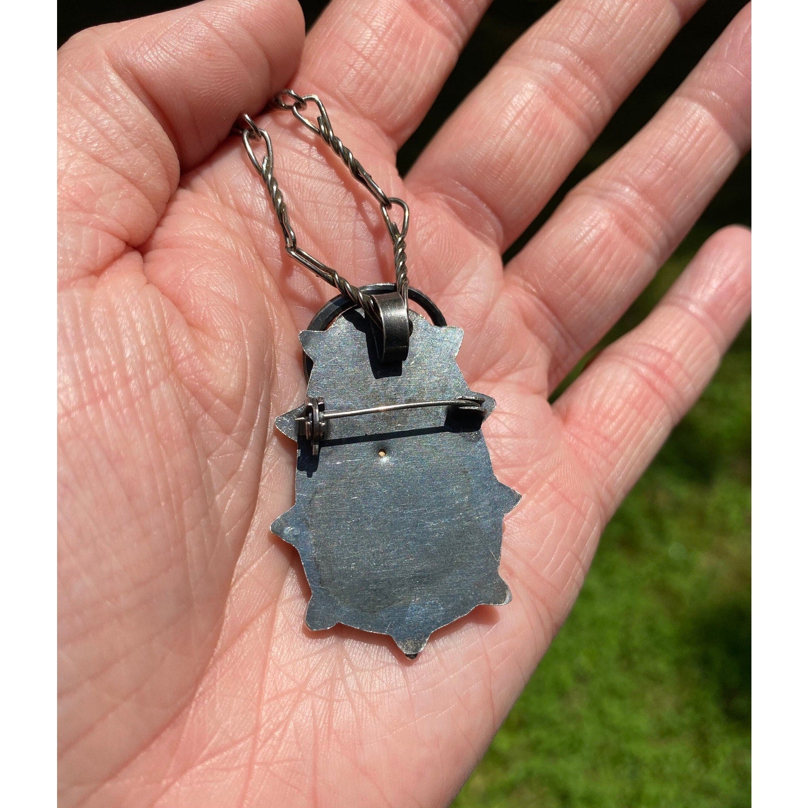 ANTIQUE SNAKE GLASS STERLING PENDANT / NECKLACE / BROOCH is most