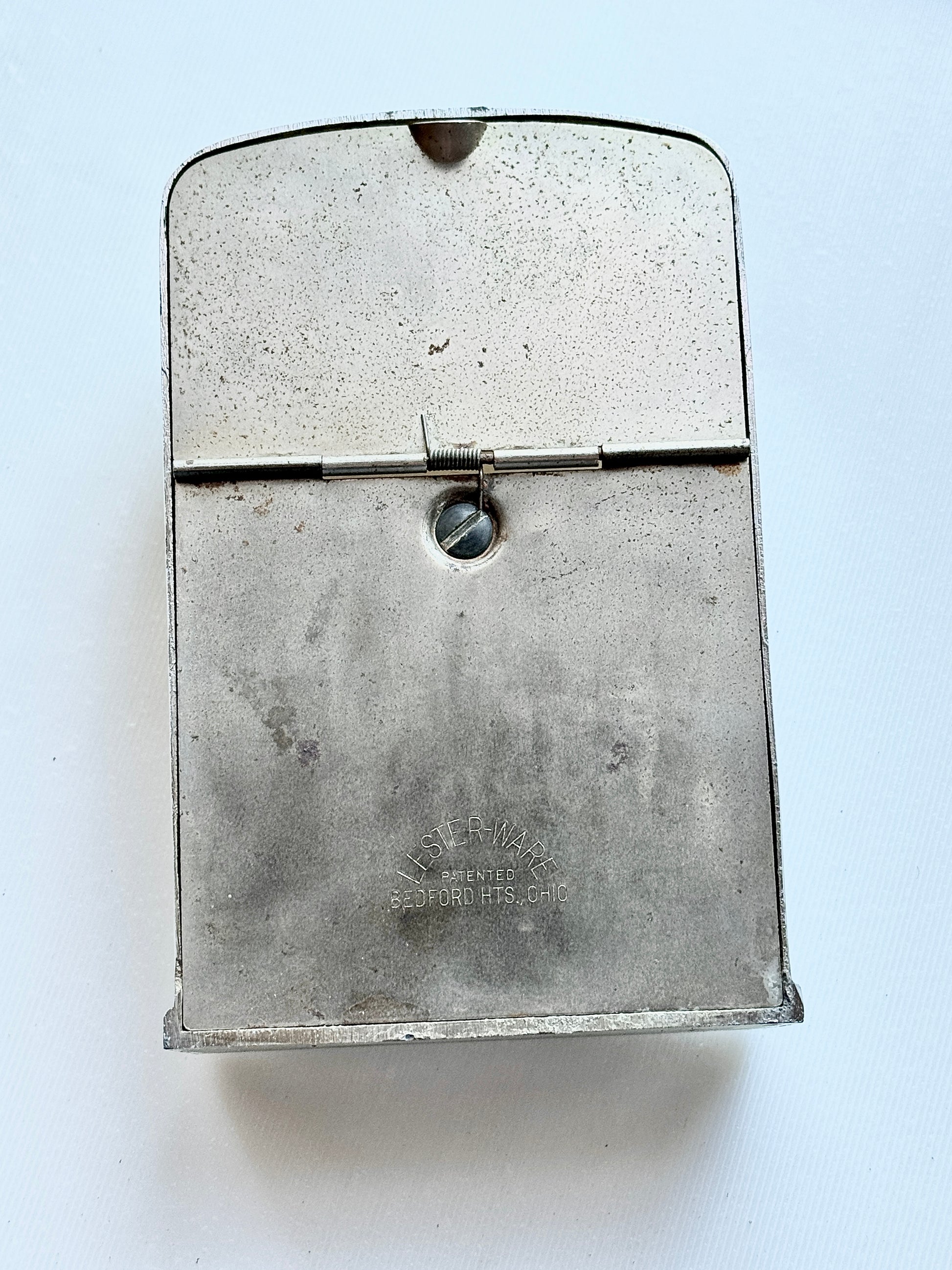 Rare, cute with a working level that shares out your product of choice. No coins necessary. 4x6”, chrome with an amber plastic window.